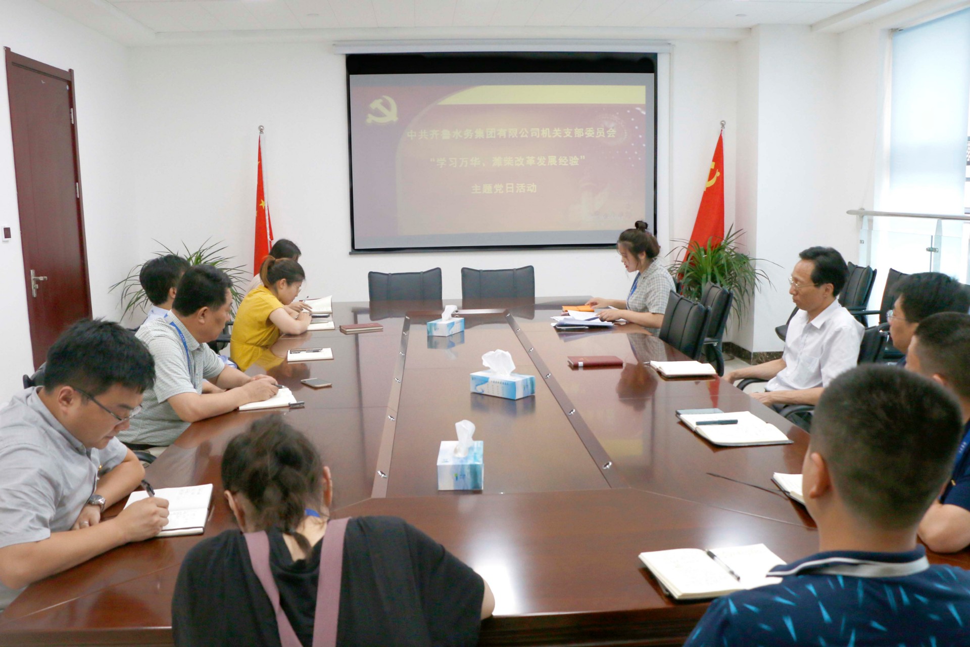 為激勵黨員干部對標先進,學習優秀改革發展經驗,進一步加快齊魯集團新舊動能轉換,7月16日,中共齊魯水務集團有限公司機關支部委員會“學習萬華、濰柴改革發展經驗”主題黨日活動在濟召開,活動由機關黨支部委員閆玉華同志主持,齊魯集團機關黨員參加活動。